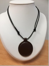Wisiorek skórzany o skali ochrony WP2 , – kolor ciemny brąz – przeznaczony jest dla dzieci i dorosłych o wadze od ok 35 kg do ok 65 kg wagi.